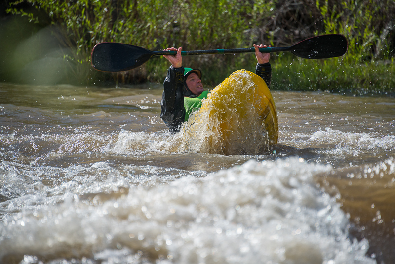 Aren Rane providing a great whitewater kayak action photo opportunity during the Santa Fe Workshops, Adventure Photography Workshop with Michael Clark.